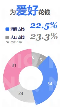 Z 世代(95后-00后)人口占比23.3%,消费占比达22.5%。作为移动互联网时代的原生居民,成长于社交媒体爆发的时代,他们分布在多元圈层文化,对自我身份有着清晰认知,消费对他们而言,早已超越物质本身,本质是获取圈层归属、进行身份表达的社交货币。