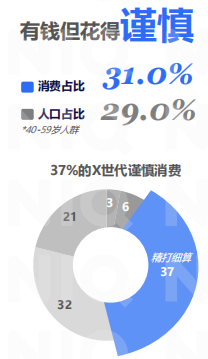 千禧一代(80后-90初)是“体验驱动的品质生活家”。他们人口占29.0%,贡献27.0%的消费额,其中64% 的人乐于消费,是“有钱且愿花”的核心人群。对他们而言,消费不再是简单的购物,而是获取卓越体验、寻求价值认同的综合投资。